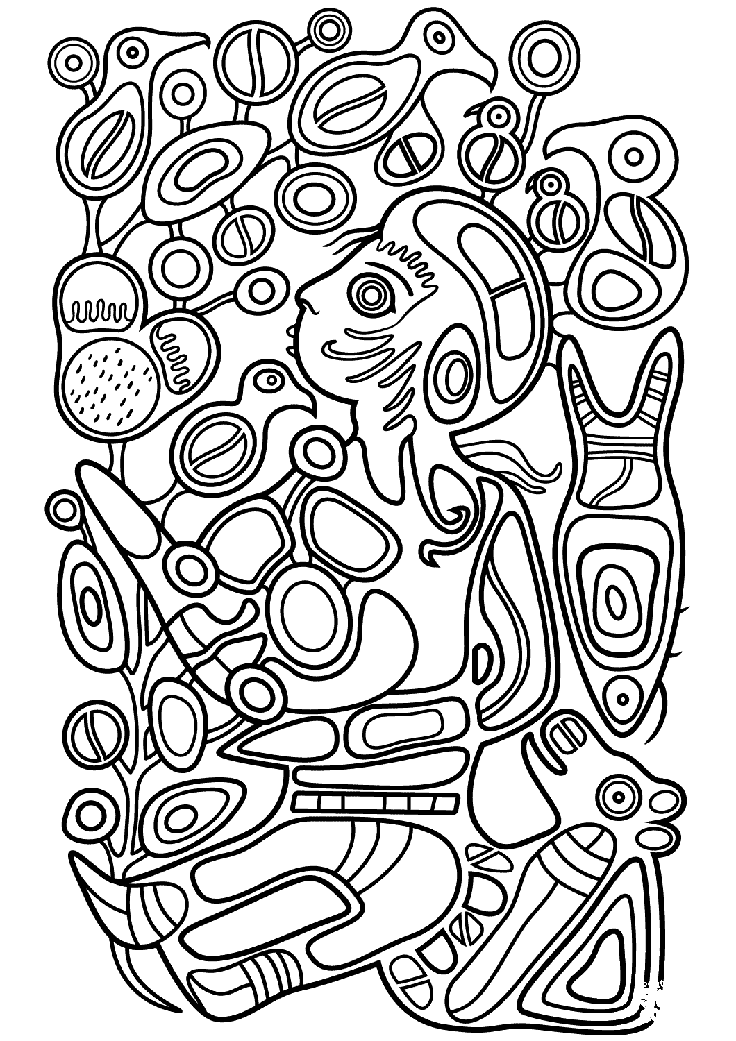 Children in the Tree of Knowledge by Norval Morrisseau coloring page