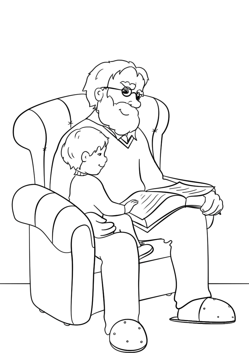 Grandpa Reading Book to His Grandchild coloring page