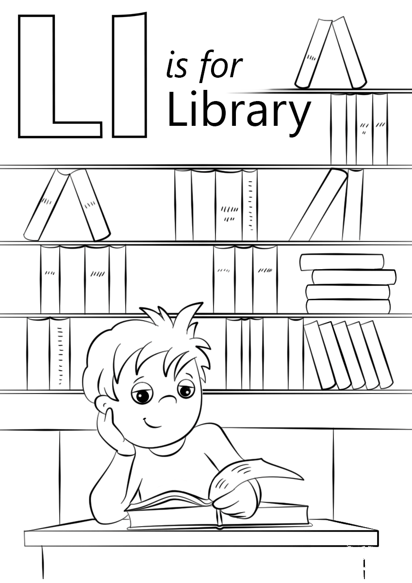 Letter L is for Library coloring page