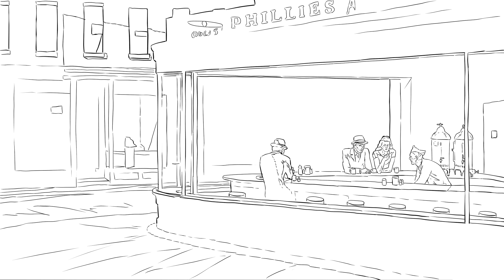 Nighthawks by Edward Hopper coloring page