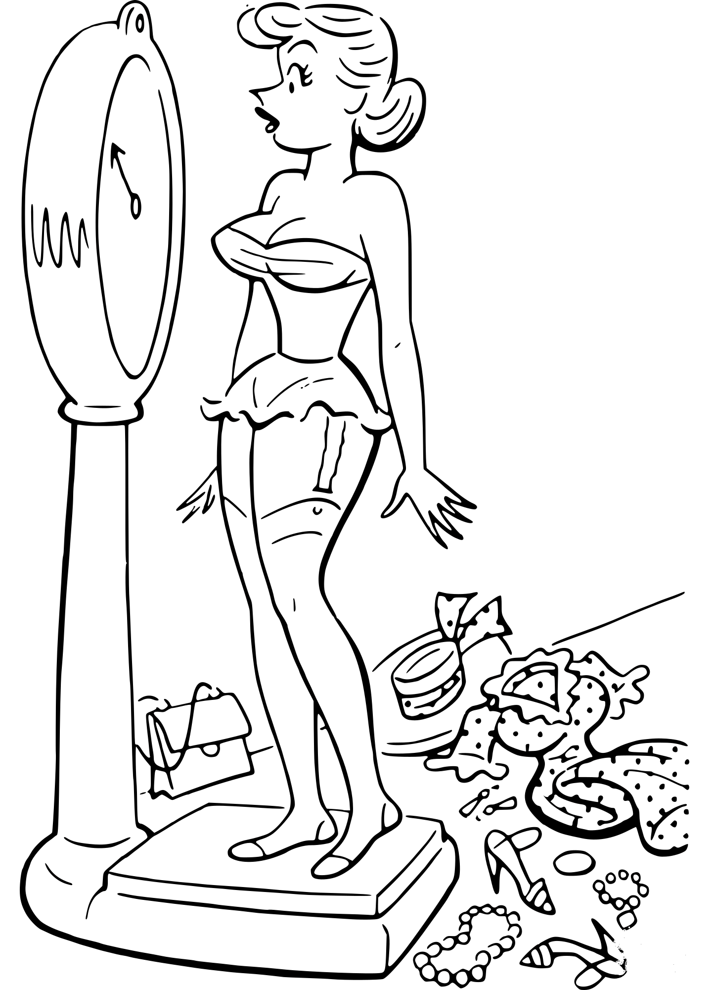 Retro Comic of Woman on Scale coloring page