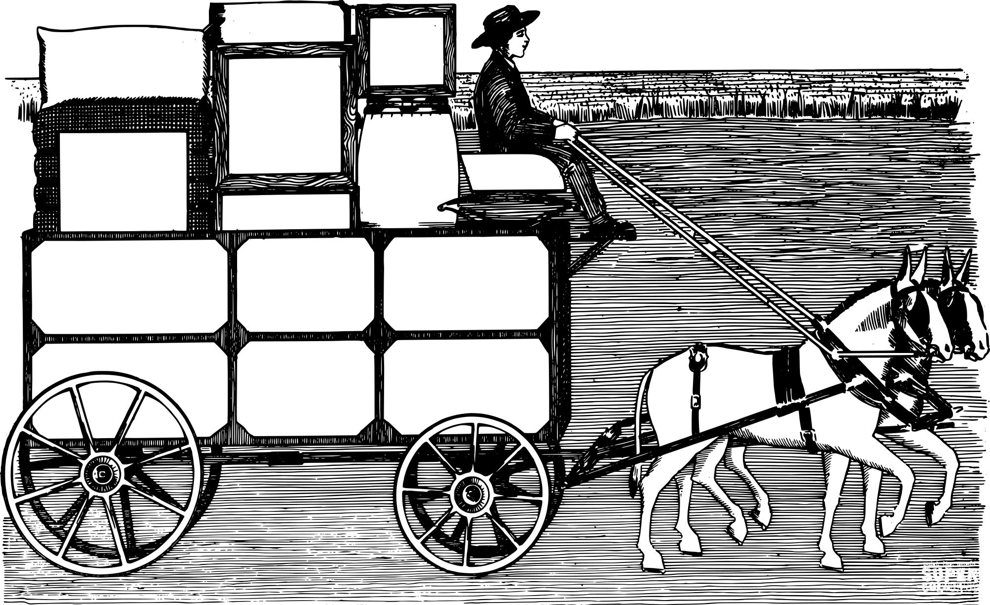 Vintage Boy on a Delivery Cart coloring page