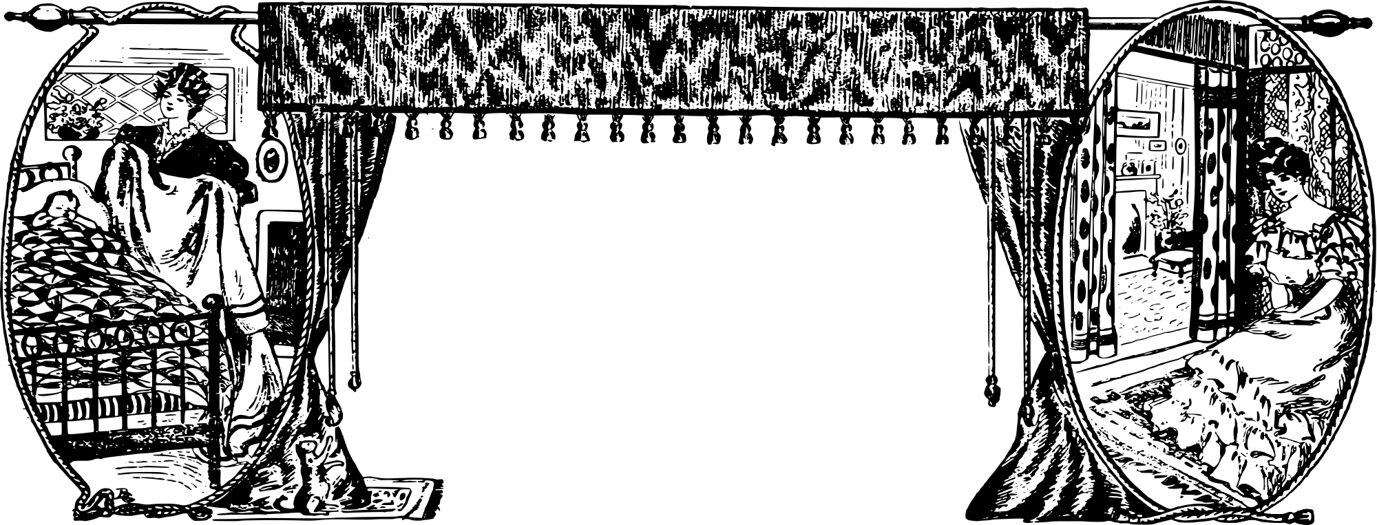 Vintage House Curtain Frame coloring page