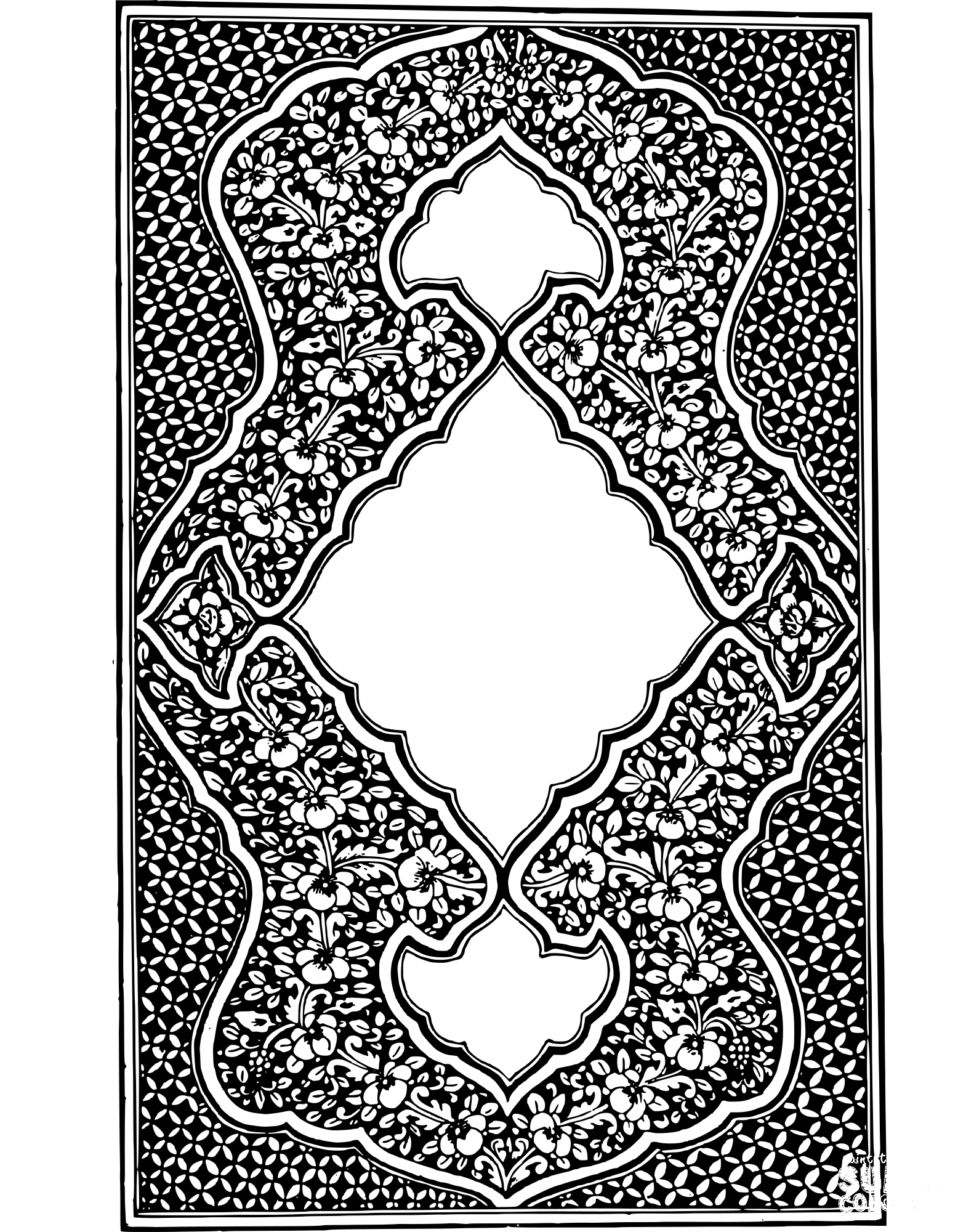 Vintage Net and Flowers Frame coloring page