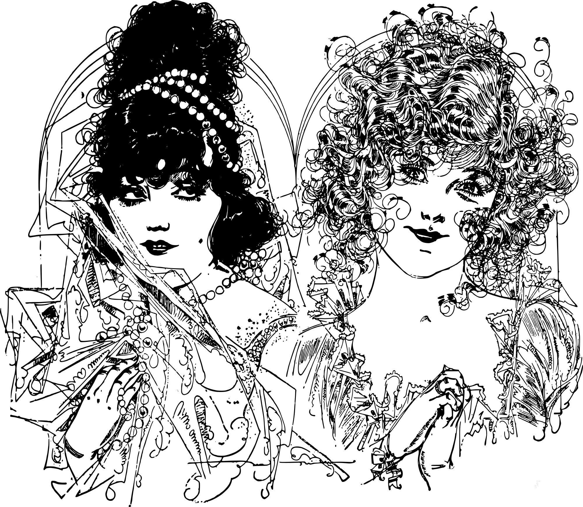 Vintage Two Girls Heads coloring page