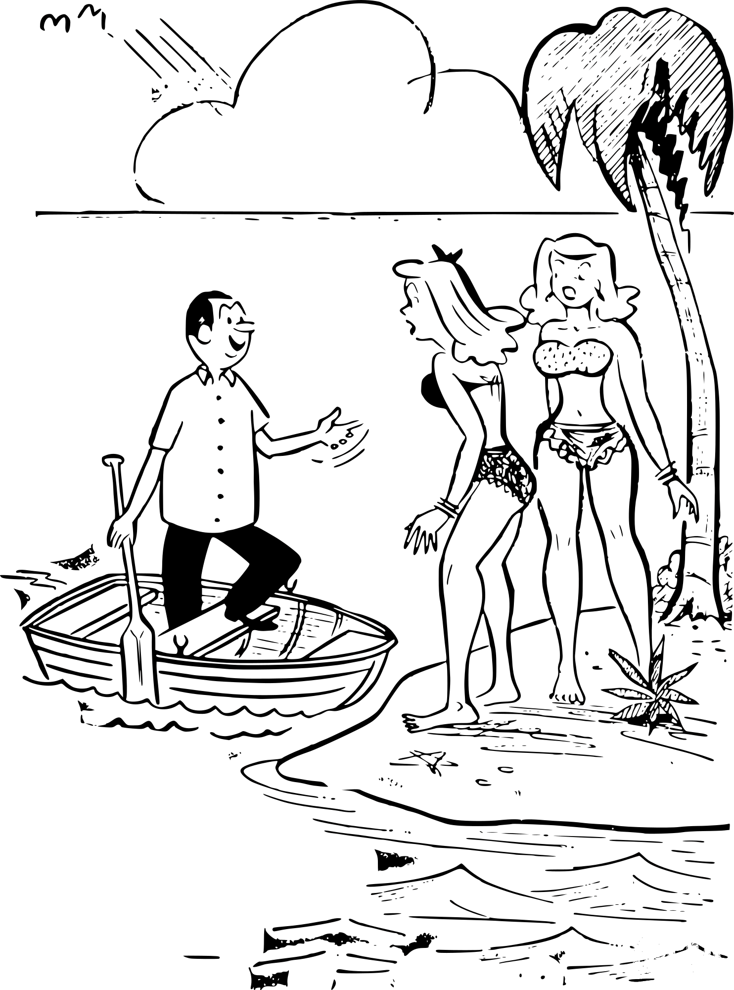 Vintage Women on Deserted Island coloring page