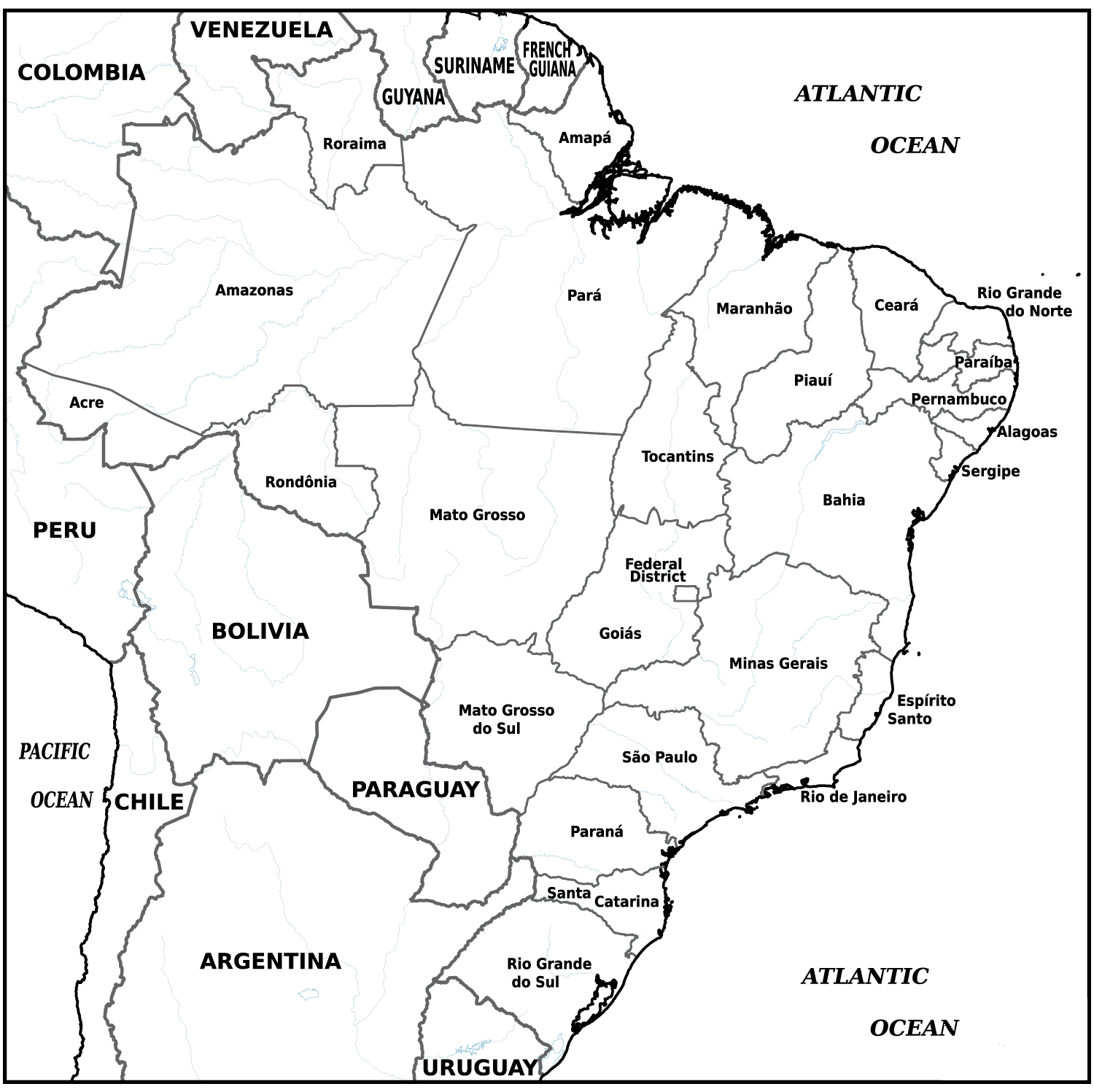 Outline Map of Brazil with...